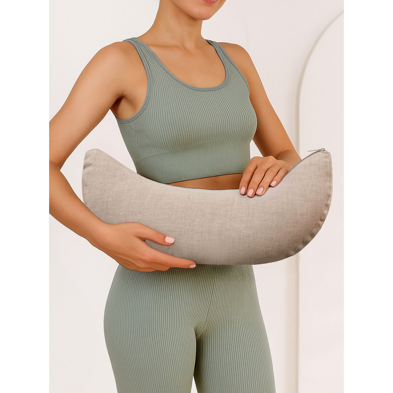 Удобная подушка в форме полумесяца. Применяется для облегчения выполнения сидячих поз йоги (поза лотоса, сиддхасана и пр.), разгружает позвоночник и позволяет удерживать его в прямом положении.
