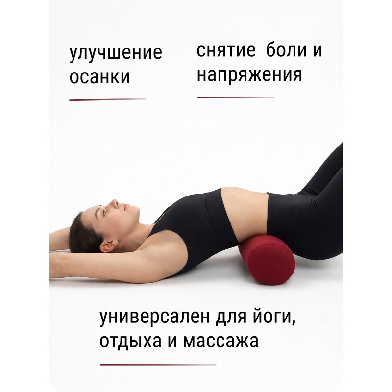 Подходит для ежедневного применения в фитнесе, йоги, лфк, гимнастических упражнениях. Для растяжки и массажа мышц спины, поясницы, шеи. Благодаря ортопедической форме и гречишному наполнителю, изделие способствует комфортному положению тела во время сна и отдыха.
