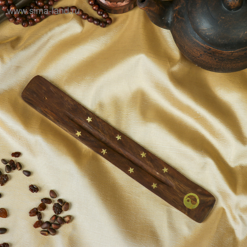 Подставка под благовония "Лыжа" с инкрустацией в виде символа Инь-Ян. Подставка для ароматических палочек выполнена из 100% дерева палисандра. Отверстие - держатель отлично удержит благовония - палочки с бамбуковой основой.