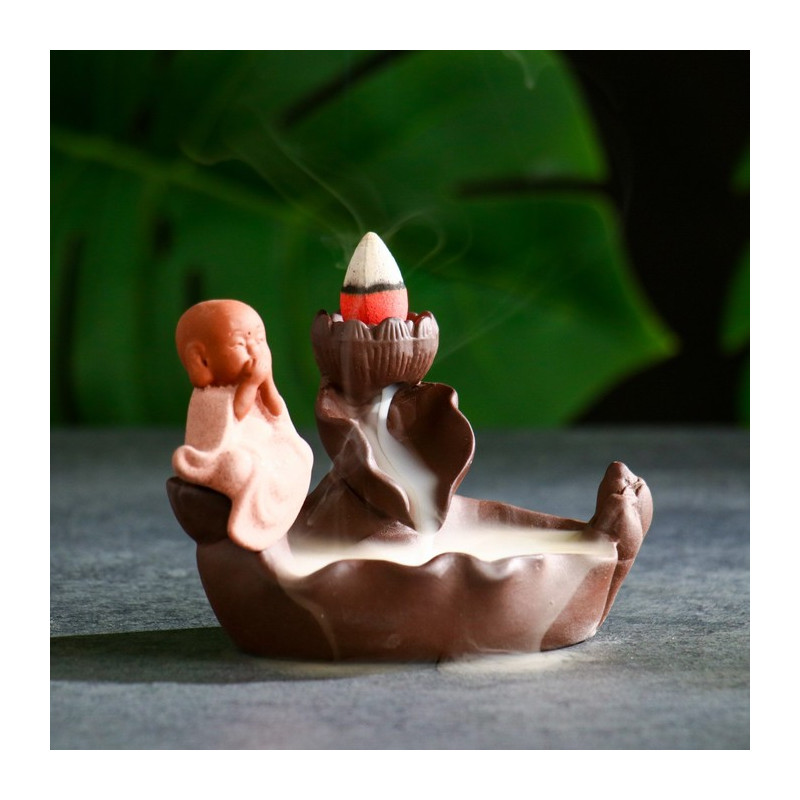 Подставка для благовоний «Будда молчание», набор благовоний конусы, стелющийся дым, 12.8.8 см