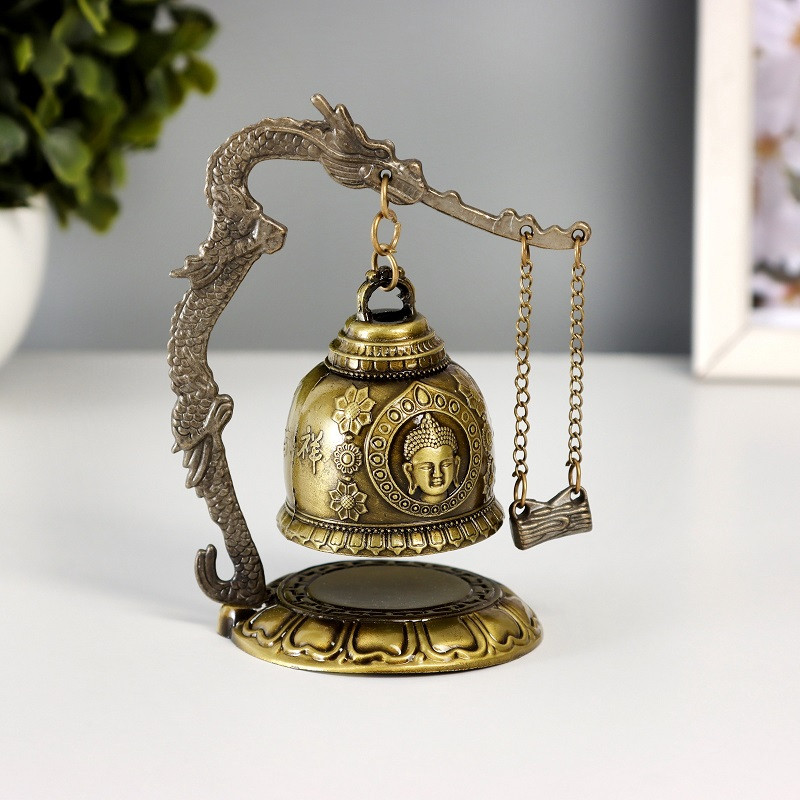 Колокол-гонг металл настольный «Будда», Диаметр - 4.8 см, 11.2х9.5х9.5 см