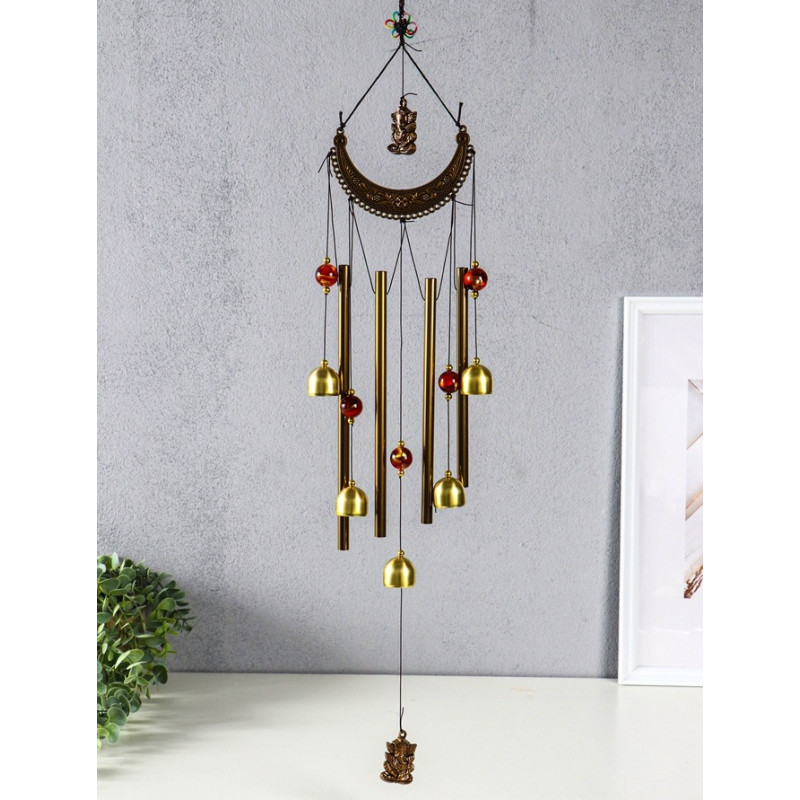 Металлический колокольчик "Ганеша" состоит из четырёх элегантных трубочек и пяти тонких колокольчиков, которые, словно мельчайшие звезды, создают волшебные мелодии, наполняющие пространство нежными и успокаивающими звуками.