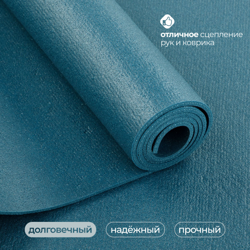 Коврик для йоги Yogastuff Rishikesh 183x60х0.45 см, синий. УЦЕНКА (мелкий дефект поверхности)
